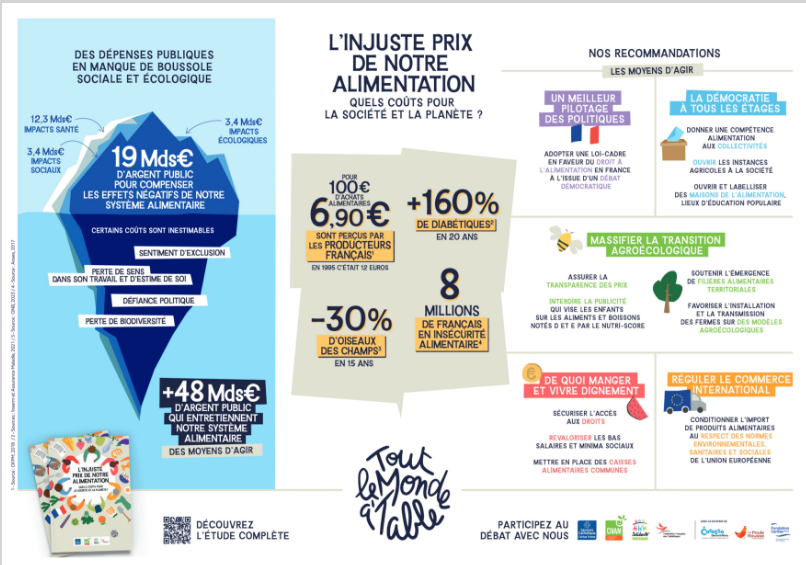 Une infographie du Secours Catholique dénonce l’argent public dévoyé, aux subventions qui dégradent la qualité des productions de l’alimentation en général et vers les pauvres en particulier. 19 Milliards€ de correctif pour la santé, et l’environnement. 48 Milliards€ de subvention à l’Agro-Alimentaire. Moins de 7% revient à l’agriculteur. Une spirale d’économie des ménages sur la bouffe qui favorise une prise… Lire la suite …